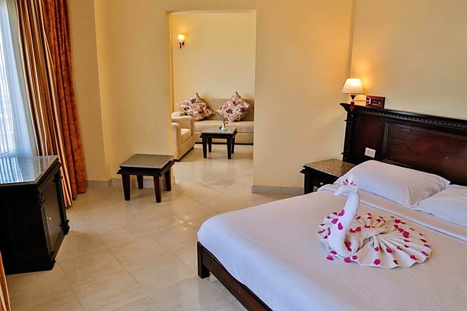 With over 1362 glowing reviews, guests rave about the resort's private beach area, complimentary beach chairs, and the tranquil atmosphere that allows you to unwind. Whether you're soaking up the sun on the terrace, treating yourself to a soothing massage at the spa, or simply enjoying the lush garden views, Magic Beach Hotel is your ticket to a magical getaway. Come make waves and create memories in beautiful Hurghada!